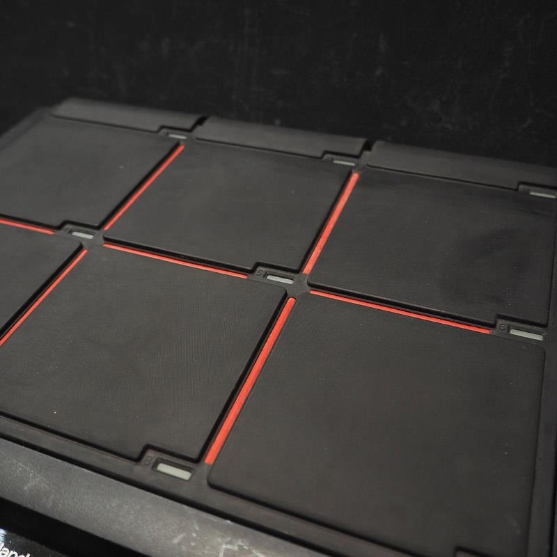 SPD-SXのパッド部には、心地よい打感の大型6面パッドに加え、スティックのショルダーで狙いやすい3つのエッジ・トリガーを搭載。サンプル再生時は各パッドのLEDインジケーターが点灯するため、暗いステージでもパッドの位置や状態を確認しながら演奏することが可能。またキット名などはバックライト付き大型液晶パネルにわかりやすく表示。演奏に必要な情報がひと目で把握でき、快適なリアルタイム演奏が行えます。ステージでの見栄えも十分に意識して、本体サイド面にはシャープな質感のアルミ素材を採用。精悍なブラックを基調に、鮮やかなレッドのラインをパッドの仕切りに配した、飽きのこないデザインも魅力です。