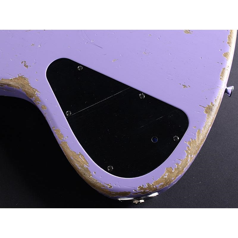 エイジド仕上げのラッカーフィニッシュ/ローステッドネック仕様。「あの人」の愛機と同色の「ベイビーパープル」で製作した一本。