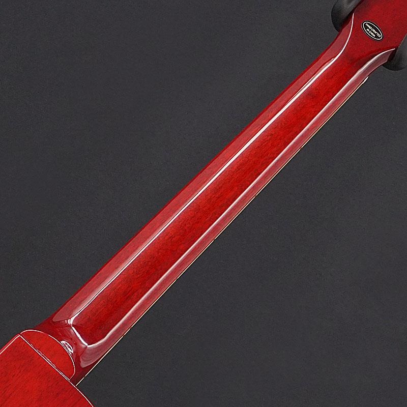 ボディ・トップにはメイプルが貼られ、上面にはAAA グレードのフレイム・メイプル化粧板があしらわれています。1959ラウンド・ミディアム・Cシェイプのネックにはバインディングが巻かれロング・ネック・テノン方式でボディにジョイントされています。