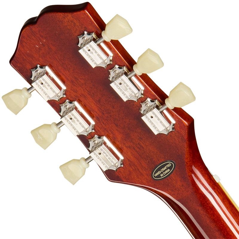 ネックにはマホガニーを使用し、1959 ラウンデッド・ミディアムCプロファイルとロングテノン・ジョイントを採用することで、高い安定性とサステインを確保しています。指板にはローズウッドを採用し、アクリル・トラペゾイド・インレイと22本のミディアム・ジャンボ・フレットを装備しています。カラマズー・ヘッドストックには、エピフォンVintage DeluxeチューナーとGraph Techナットを搭載し、安定したチューニング性能を実現しています。ブリッジにはエピフォンLockTone Tune-O-Matic、テイルピースにはLockToneストップ・バー・テイルピースを採用しています。