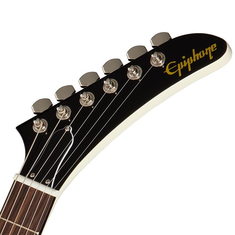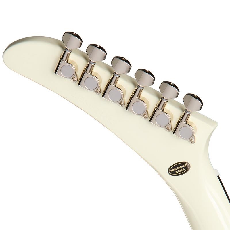 Explorer 80s - EMGは、60s スリムテーパープロファイルを採用した演奏性の高いマホガニー・ネックを備えています。ローズウッド指板には22本のミディアム・ジャンボ・フレットと、シンプルなパーロイド・ドット・インレイを採用しています。ヘッドストックにはミニ・ダイキャスト・チューナーとGraph Techナットを装備し、安定したチューニング性能を実現しています。弦はエピフォンLockTone Tune-O-Maticブリッジを通り、LockToneストップ・バー・テイルピースに固定されます。