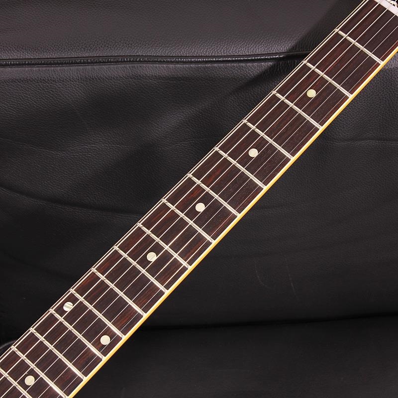 こちらは50年代~60年代の代表的な仕様へと変遷していく過程を表現した61年タイプのリイシューモデルです。ダブルリングのクルーソンペグやシルバーインサートのハットノブ、ショートピックガード、小窓のように刳り貫かれたセンターブロックは既に60年代風ながら、指板のポジションマークにはドットポジションを採用することで50年代の名残も感じさせるユニークなモデルとなっております。