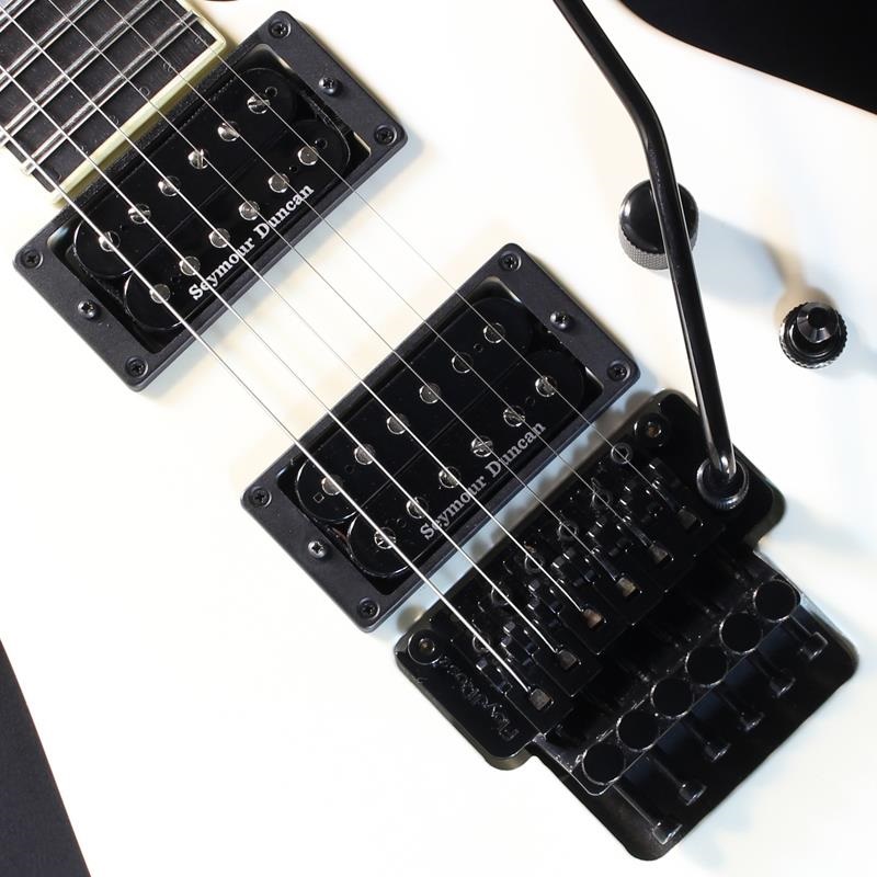 プレミアムな機能として、アルダーボディ、柾目のイースタン・ハードロックメイプルネック採用のスルーボディ、コンパウンドラジアスのエボニー指板、Seymour DuncanハムバッキングPU、Floyd Roseオリジナルトレモロが搭載されております。