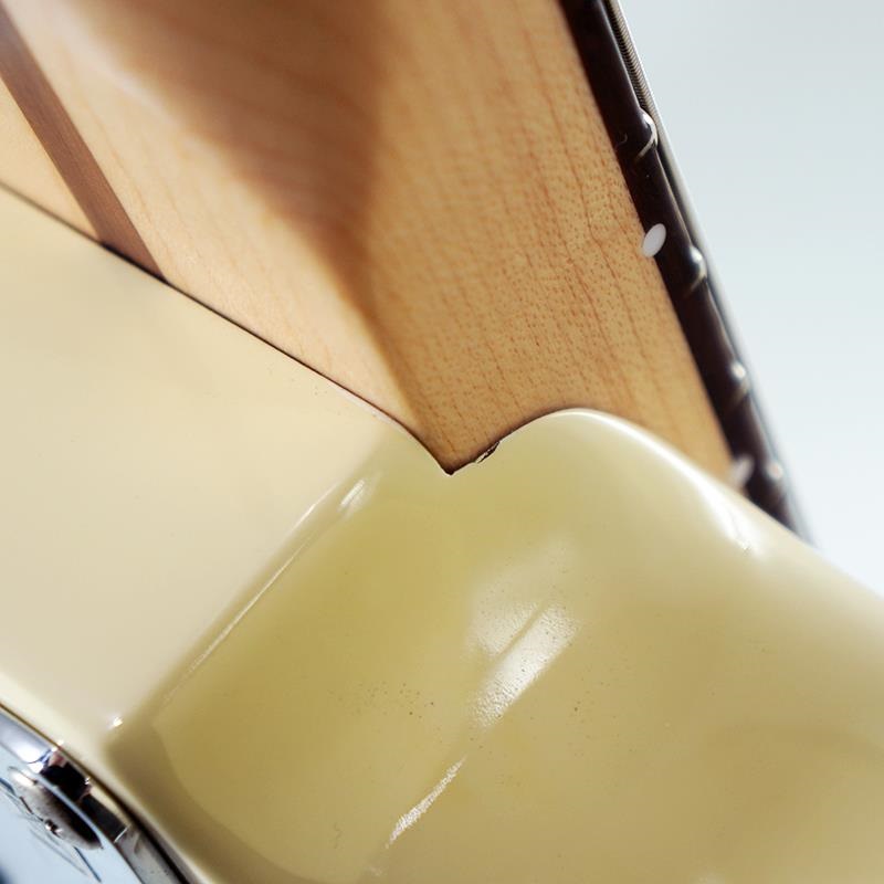 細かいスリ傷やピックガードの弾き傷、元々の塗装のへこみ、左側のネックポケットの塗装チップ、全体の色焼け、塗装の引き、パーツのくすみ等は見受けられますが、いずれも現状のご使用に問題ございません。当店にてフルメンテナンスとクリーニングを施しておりますので、すぐにご使用頂けます!