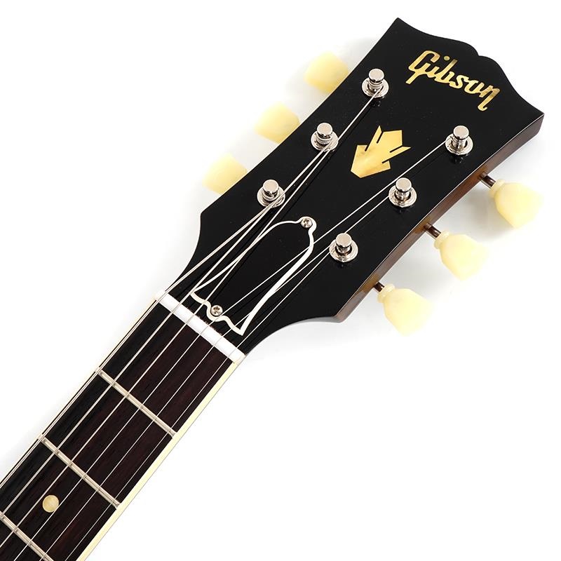 1959年タイプのヒストリックモデルらしくディープジョイント、バンブルビーキャパシターを採用。この年代の特徴でもあるくり貫きが小さく、リアPUの配線穴がドリルで空けられた構造のセンターブロックによるタイトな鳴り、そして59スタイルのしっかりとしたネックグリップとの組み合わせから生まれる、太くふくよか、それでいてタイトで明瞭な輪郭感がオールマイティに幅広い場面で活躍してくれます。