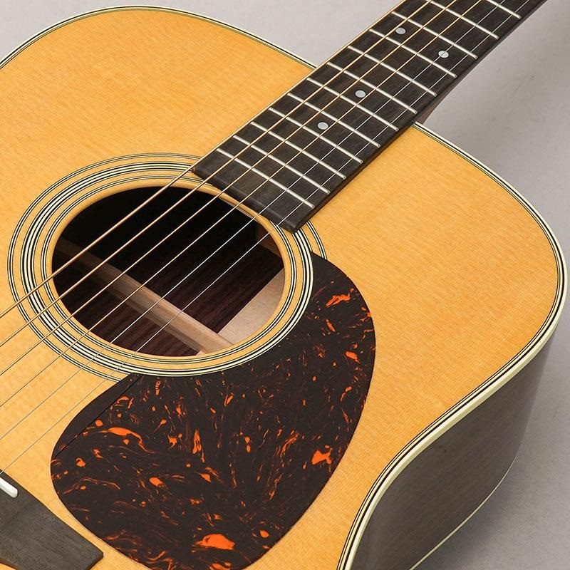 深みのある低音と煌びやかな高音を兼ね備えており、その大きなボディから生まれるパワフルかつバランスの取れたサウンドは、ブルーグラスやロカビリー、ロック、ポップス、ジャズetc...幅広い音楽ジャンルに対応し、数多くの伝説的なミュージシャンに愛用され、彼らにたくさんのインスピレーション与えてきました。ギタリストでなくても誰もが1度は聴いたことのある音色をもつD-28は、まさに永遠のスタンダードです。