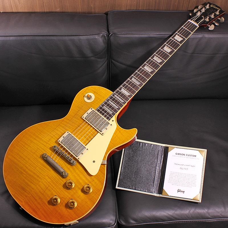 本機は4段階で設けられた中で2番目に軽度なエイジングレベルとなる「Light Aged」が施された1959 Les Paul Standard Reissueです。エレキギター史に燦然と輝く1959 Les Paul Standard Model。数々のミュージシャンを虜にした圧倒的な存在感を放つサウンド、そして艶かしく弾き手を魅了する美しいボディラインは現代に於いても全てのロックギタリスト憧れのアイコンと言えるでしょう。