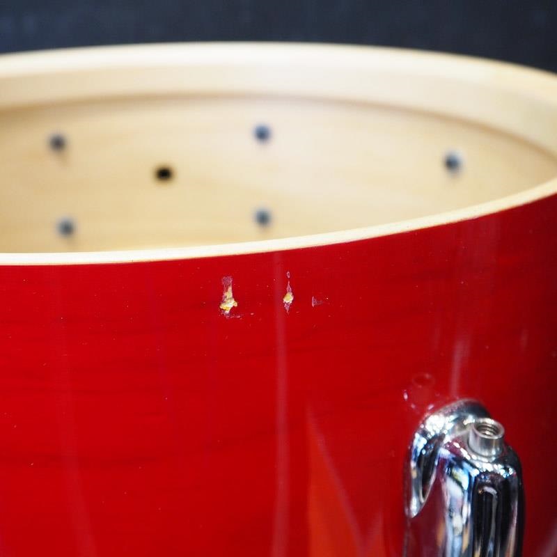 スチームベンド(蒸気曲げ加工)を施すことで、本来加工が難しい分厚い単板メイプル材をシェル成型することに成功。金属部品やヘッドの圧力に耐えられるよう、エッジを同じくメイプル材のリングで補強しています。