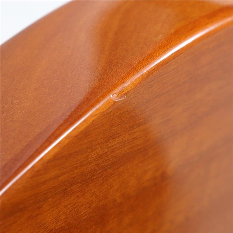 ネックフィニッシュは焼け色のウレタン塗料が使用され、ヘッドトップのみ 1トーン濃い目の焼け色仕上げ によるラッカーフィニッシュを採用しています。また、modernロゴ はトップコートの下に配置しています。