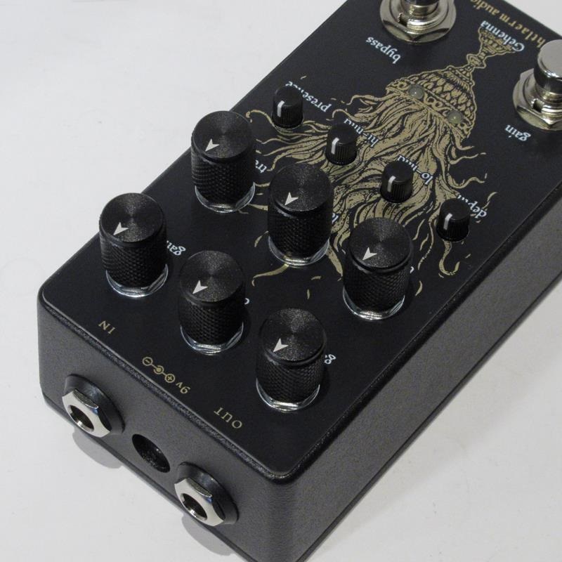 独自のカットコントロールを搭載しており、さまざまなゲイン構造、サチュレーションタイプをダイヤルで調整し、ギターのチューニングに合わせて周波数応答を調整できます。非常にタイトで制御されたサウンドから、轟音のような巨大なビンテージサウンドまで、さまざまなサウンドが得られます。Gehennaは、あらゆるペダルの中で最も拡張性が高く、使いやすいEQセクションの1つを誇ります。アクティブ・デュアル・バンド・ミッド・コントロールにより、ハイミッドとローミッドの両方を個別に調整できます。アクティブなトレブルとベースのコントロール、パッシブプレゼンスとデプスのコントロールのセットにより、他のディストーション/プリアンプ・ペダルとは一線を画し、膨大なトーン調整機能を備えています。パッシブ・コントロールとアクティブ・コントロールを組み合わせることで、クラシックなアンプのようなディストーションから、これまでに聞いたことのないダーティーなサウンドまで、さまざまなサウンドが得られます。