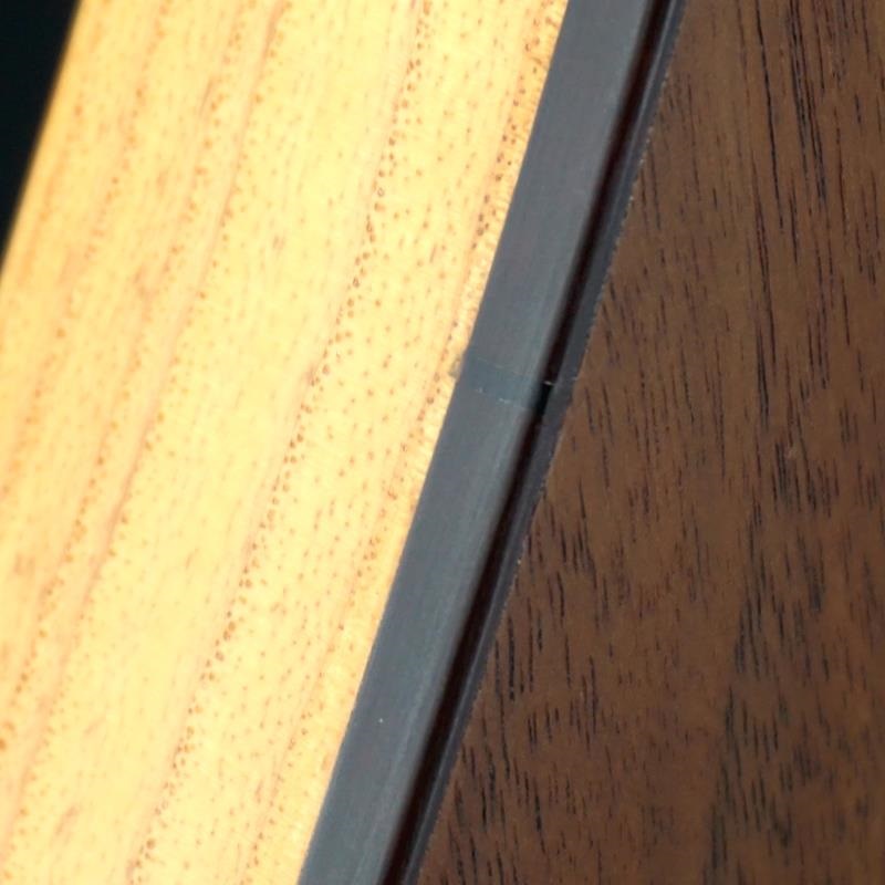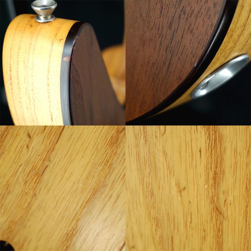 セミホロウ・デザインの軽量な1ピースのアッシュ・ボディのTOPにはウォルナット材を使用し、指板はエボニー材とシンプルな材ならではの精悍なルックスに太い鳴りを保ちつつ、音の芯や立ち上がりの良いサウンドです。