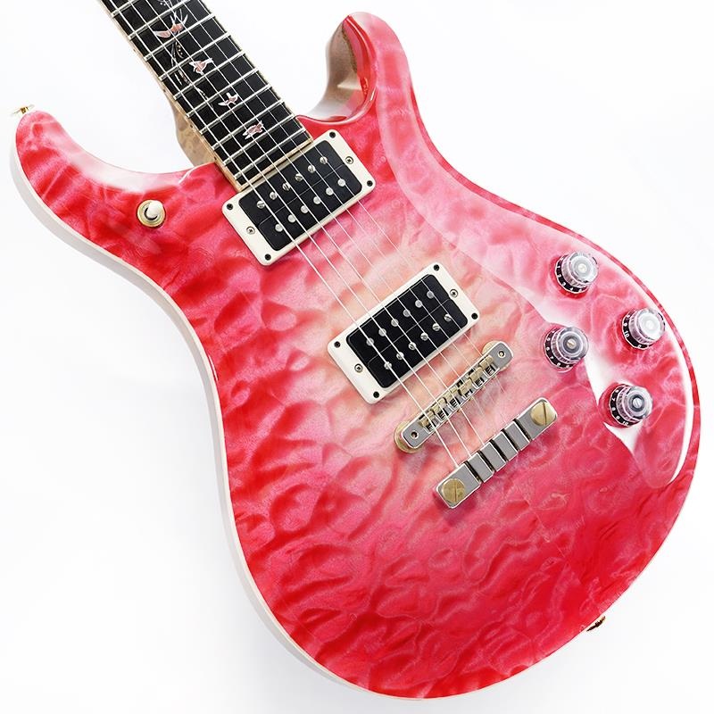 指板に使用されるPRSを象徴するバードインレイは、ボディカラーに合わせたピンク・コーラルをベースにマザー・オブ・パールのアウトラインがチョイスされており、さらに7フレット部から19フレット部にかけてパウア材のバインインレイが施され、視認性を確保しながら派手になり過ぎず、しかしプライベートストック然とした高級感を漂わせるルックスに仕上げられております。