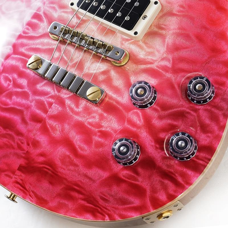 「Bonnie Pink Glow」カラーで彩られたボディトップにはプライベートストックならではの美しい杢目が浮き出たキルト・メイプルを使用、トップの鮮やかなカラーと相まって、一目見ただけでもその存在感を感じる美しいギターに仕上がっております。