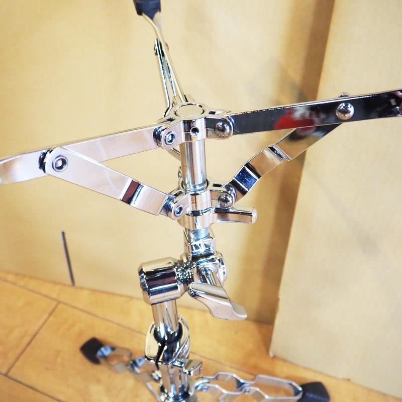 様々なドラマーに対応するスタンダードなスネアスタンド。スネアドラムの微妙な角度調整を可能にした180°無段階で固定できるユニロック・ティルター、クッション機能をもたせることで、ドラムのトーンやサスティーンを最大限に生かすエアサスペンションラバーチップ、ノイズ対策を施し保持力も抜群のダイカストジョイントなど、質の高い技術が様々な箇所に散りばめられている。