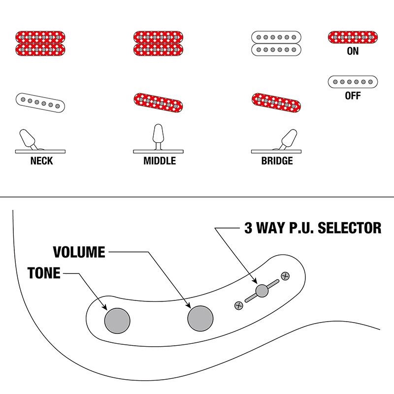 Controls, P.U. selector 1 Volume, 1 Tone, 3-way lever switch