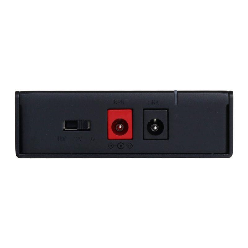 専用設計のカスタムトランスを搭載した、全5 ポートフルアイソレーテッド回路のパワーサプライです。アダプターへの給電が100vを確保出来ている環境下で無負荷時電圧9.4v以上になるよう設計されており、特にDistortionやOverdrive系のペダルで音に張りと厚みが生まれ、ブライトネスも上がる効果も期待できます。デジタル× アナログ機器併用時特有のノイズも大幅カットを実現。昨今のボードのスリム化傾向をふまえて、筐体サイズを極限まで突き詰めコンパクトなサイズを実現しました。ポート5番9,12,18V 切替可能。幅広いエフェクターに対応します。最大の特徴として、LINK 機能で別売りの追加ユニットをケーブル接続で拡張可能。ボード内のレイアウト自由度を格段に向上させました。