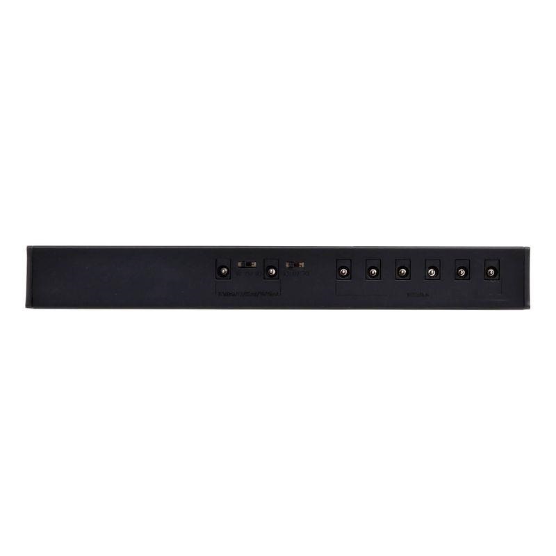 マルチエフェクターなどの専用アダプターを使用する機材を搭載したボードに便利なACコンセント出力×2系統を備えたマルチパワーサプライです。DC出力は2系統の切り替え(9V500mA,12V375mA,18V250mA)可能端子を含めた8portを装備し、グラウンドまで完全に個別にしたフルアイソレート回路を採用。Port3-8 は無負荷時供給電圧を約9.8V(最適環境下において)に、高負荷時でも9.4Vを確保出来るよう設定。特にDistortionやOverdrive系のペダルで音に張りと厚みが生まれ、ブライトネスも上がる効果も期待できます。可能な限りコンパクトに設計 (W240×D54×H30mm)し、ボード内のスペース確保を目指しました。筐体自体を放熱板として使用する機構を採用しDC出力最大消費電力18W (※Wのおよその計算法としてV×Aとする)の容量を確保。マルチエフェクターなどを含む大型のメインボードで活躍するモデルです。