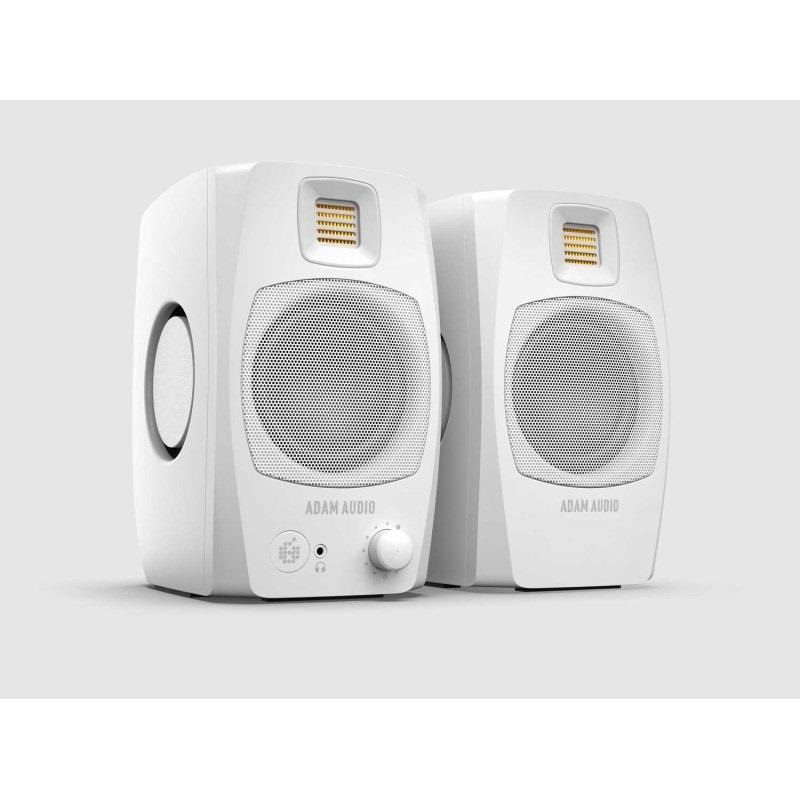 D3Vは、ADAM Audioの高品質なサウンドをPC環境で楽しみたいアーティストや作曲家、コンテンツ・クリエーター、そして音楽ファンのために作られた、デスクトップ用のコンパクトなモニタースピーカーです。ドイツの伝統的なインダストリアルデザインを取り入れ、アダムの象徴である金色のリボンツイーターを搭載しています。カラーはブラックとホワイトの2色から選べます。