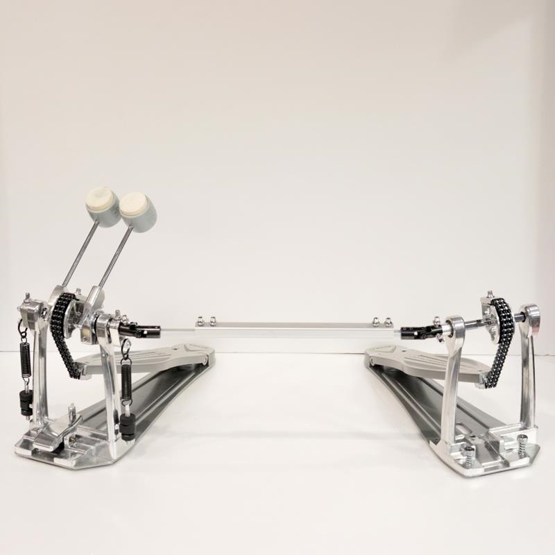 上位機種であるSPEED COBRA 910シリーズの思想を受け継いだ、エントリーモデルのツインペダル。表面がフラットなロング・フットボードによる速いフレーズへの対応力の高さと、Recessed Settingというセットアップによる軽い力での踏み込みを両立しています。