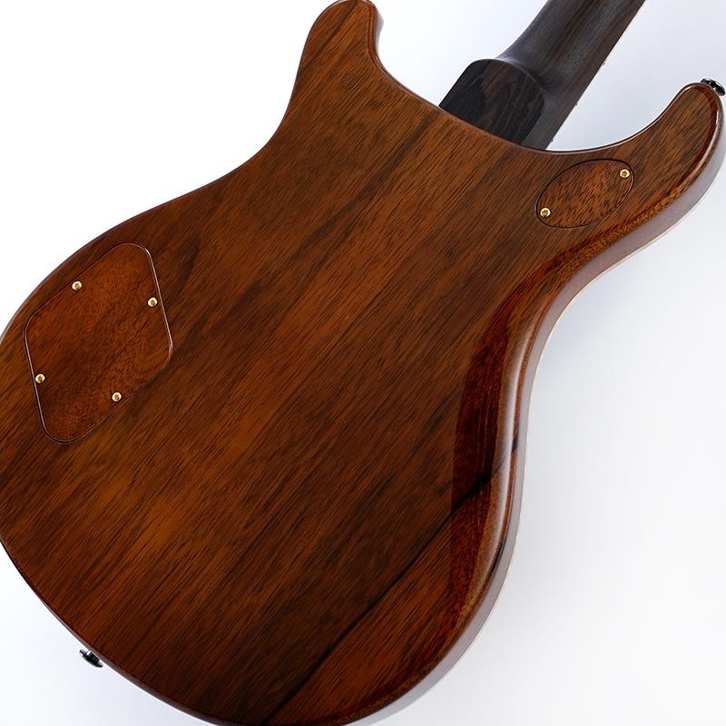 PRSを象徴する各所のインレイはパウアをベースにホワイト・マザー・オブ・パールのアウトラインを採用し、その自然が生み出す煌めきが楽器を豪華に彩っており、楽器全体的にアクセントとしてカーリー・メイプルのバインディングをし用意している点もプライベートストックならではの特別なポイントとなっております。