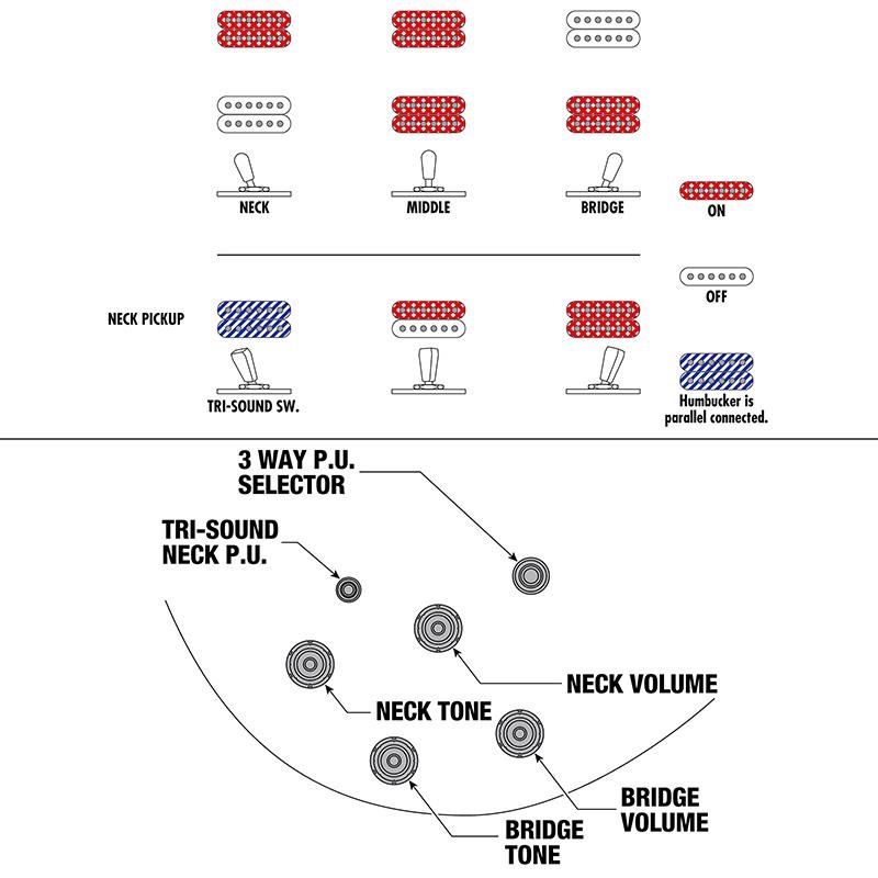 Controls, Pickup selector 2 Volume, 2 Tone, 3-way toggle switch