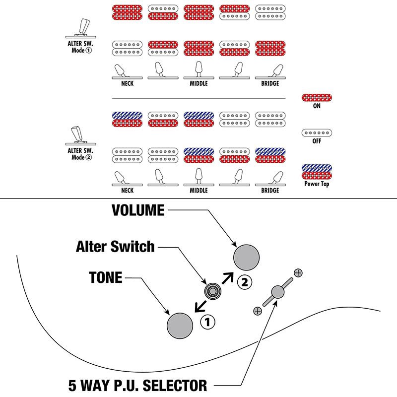 Controls, Pickup selector 1 Volume, 1 Tone, 5-way lever switch