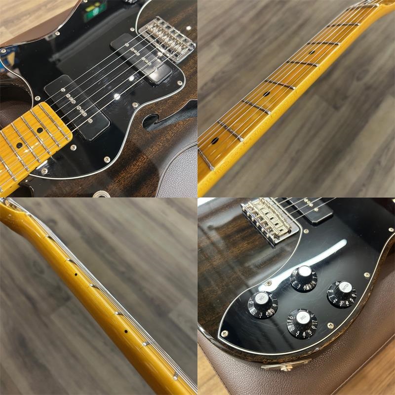 こちらはホロウ構造のボディを採用したTL Thinline Deluxe。中空のマホガニーボディとP-90タイプP.U.の組み合わせにより、ブライトでありながらも軽快なエアー感を持ったトーンを生み出します。ミディアムジャンボ・サイズの22フレット仕様や軽量なボディなど、モダンなプレイアビリティと取り回しの良さに優れた逸品です。