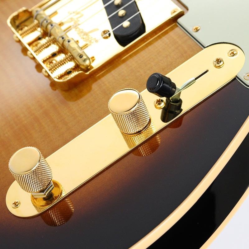 75th Anniversary V-Modピックアップは、テレキャスターの最大の魅力とも言えるトゥワングトーンと、クラシックなネックピックアップの温かみある唸りを兼ね備えています。トーンコントロールに装備されたプッシュ/プッシュ機能により、両ピックアップのパラレル/シリーズワイヤリングの切り替えが可能で、多彩なサウンドオプションを提供します。その他、ゴールドハードウェア、ヴィンテージスタイルのサドル式コンペンセイテッドブリッジ、ロッキングゴールドチューニングマシンなど、プレミアムな仕様を備えています。