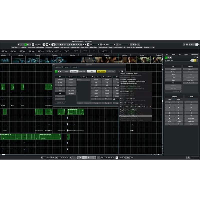 Nuendoの有名なフィルムミキシング自動化システムは、大幅に強化された。オートメーションパネルは、MixConsoleまたはProjectウィンドウの正しいゾーンにドッキングできる、垂直で省スペースのレイアウトを備えた新しいコンパクトなビューを提供します。また、プラグインのコントロールに触れることでパラメータ選択、コピー/ペーストの自動化、ラッチモードでの個別トラックパンチアウト、より明確なビジュアルオートメーション状態、適切なプレビュー表示による再生モード(パラメータ調整中)など、複数の新機能を導入する自動化システムがあります。