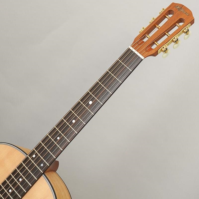 本来ならば埋められたり回避される節等がある木材を積極的に使用することによって、2つと無い個性を打ち出しております。正に木を知り尽くしているからこそ出来るアプローチ。Kヤイリ特有の繊細なサウンドかつダイナミックな鳴りと、12フレットジョイントならではのふくよかなトーンがあわさり心地良い響きを奏でます。丁寧製作されており、まるで長年引き続けていたかのような感覚でお使い頂けます。