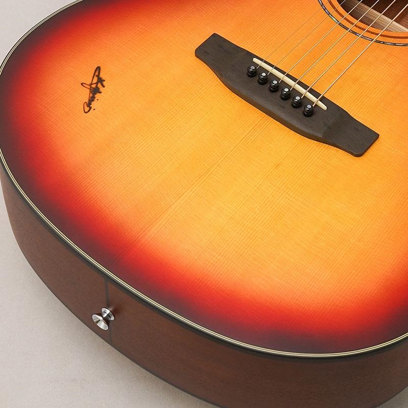 このRF-65はK.YAIRIのオリジナルボディシェイプで、抱え易い小ぶりなボディ幅広く人気のあるモデルです。ボディの木材で型番が決まっており、「65」はボディのサイドバック材にマホガニーを使用したモデルになります。またトップ材は単板のシトカスプルースが使用されております。小振りのギターはボディ全体の鳴りが弱くなる傾向にありますが、ボディ厚を調整する事によって十分な鳴りと抱え易いサイス感が共生した絶妙な設計になっており、バランスの良い耳心地の良いサウンドは扱い易いので広くお勧め出来る音色です。