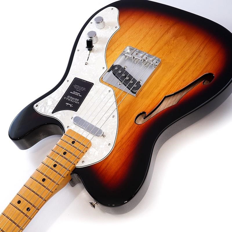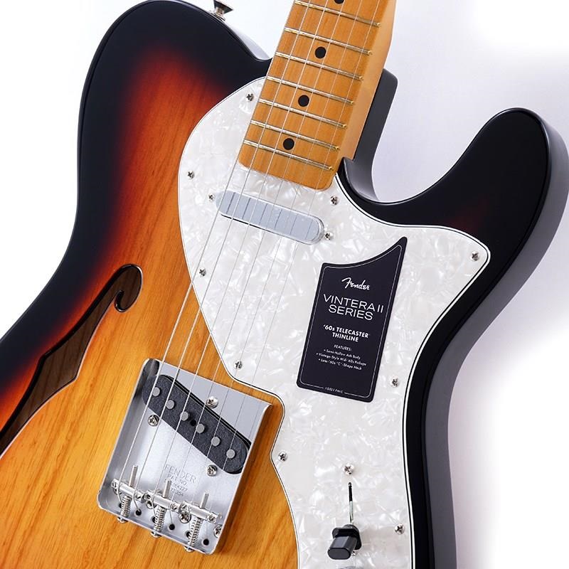 Vintera II 60s Telecaster Thinlineは、セミホロウのアッシュボディとメイプルネックを採用し、パンチと透明感に溢れ、アコースティックでオープンな響きと深みを持つクラシックなフェンダートーンを実現します。