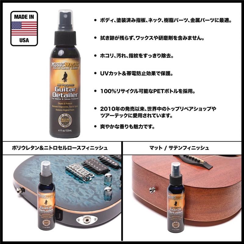 続いて Guitar Detailer を使えば、ボディやネックに付着した汗や指紋をすっきり除去。