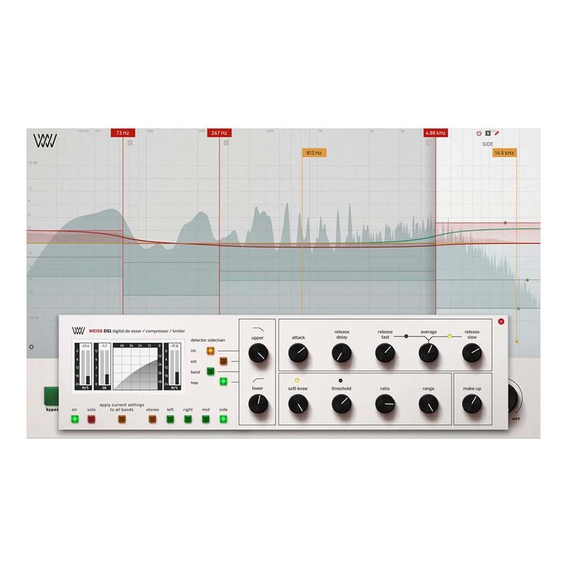 これは、受賞歴のある Weiss DS1 を、マルチバンドコンプレッサーの5つのバンドすべてに対して、コードを1行ずつ忠実に移植したものであり、特定の周波数帯域ごとにコンプレッションを完全にコントロールできることを意味します。マスタリングはもちろん、ミックスバス、ボーカル、ドラムなど、あらゆる用途に対応し、Weiss Engineering が誇るあの有名な透明感(トランスペアレンシー)もそのまま備えています。