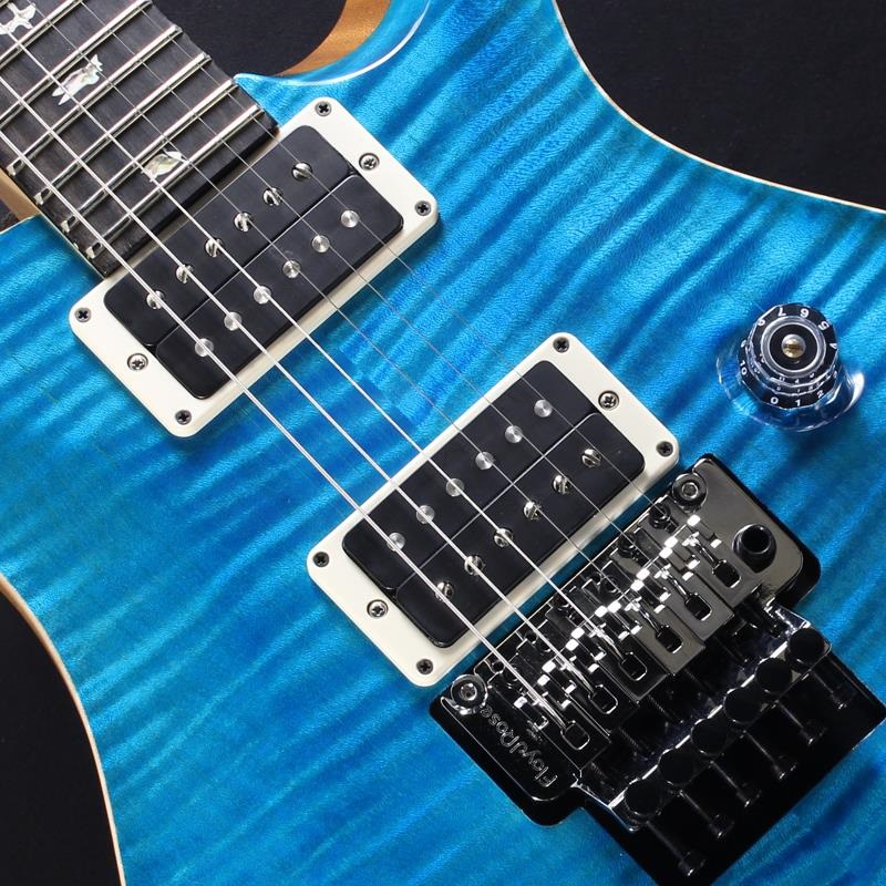 また、最大の特徴として、定評あるフロイド・ローズ・オリジナル・トレモロシステムと、PRS \m /(メタル)ピックアップ(カバーレス)を装備しております。