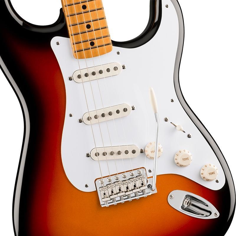 サウンドの要となるピックアップには、50年代後期のスペックを忠実に再現した3基のピックアップを搭載し、Fenderサウンドを確立した明るく音楽的なトーンを余すことなく表現します。ヴィンテージスタイルのシンクロナイズドトレモロは滑らかなヴィブラートを可能にし、年代仕様のヴィンテージスタイルチューニングマシンは、クラシックな外観を保ちながら優れたチューニング精度を実現します。