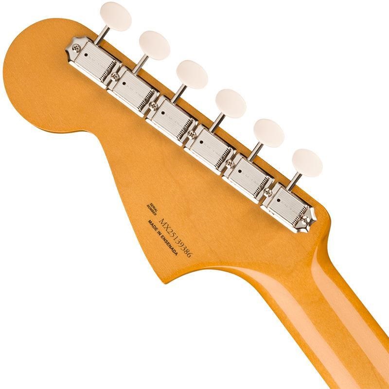 サウンドの要となるピックアップには、丁寧に作り込まれた60年代中期仕様のヴィンテージスタイルシングルコイルを2基搭載し、Fenderサウンドを確立した甘く煌めきのあるトーンそして温かくウッディなミッドレンジを余すことなく表現します。その他、ヴィンテージスタイルのMustangフローティングトレモロはスムーズなピッチ操作を可能にします。ヴィンテージスタイルの様々なディテールがクラシックな美しさをエンハンスし、当時に忠実なチューニングマシンが高いチューニング精度を実現します。