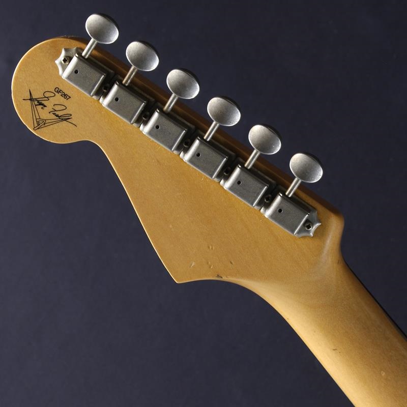 スペックシート等が付属しておらずメーカーにも情報が残っていないため不確かな部分もございますが、Oval Cシェイプのネックに杢目等の特徴からマダガスカル・ローズウッドと思われる9.5Rの指板にミディアムジャンボタイプのフレット、ポールピースの形状や氏の好みからCustom Shop製の「Fat 50s Single-Coil」と思われるピックアップが搭載されています。