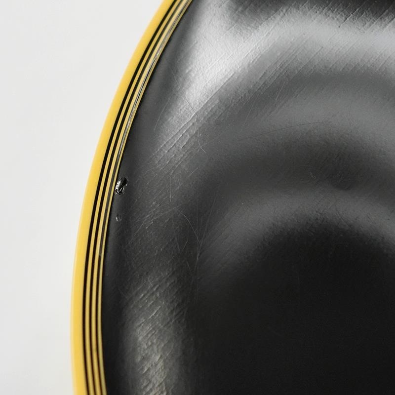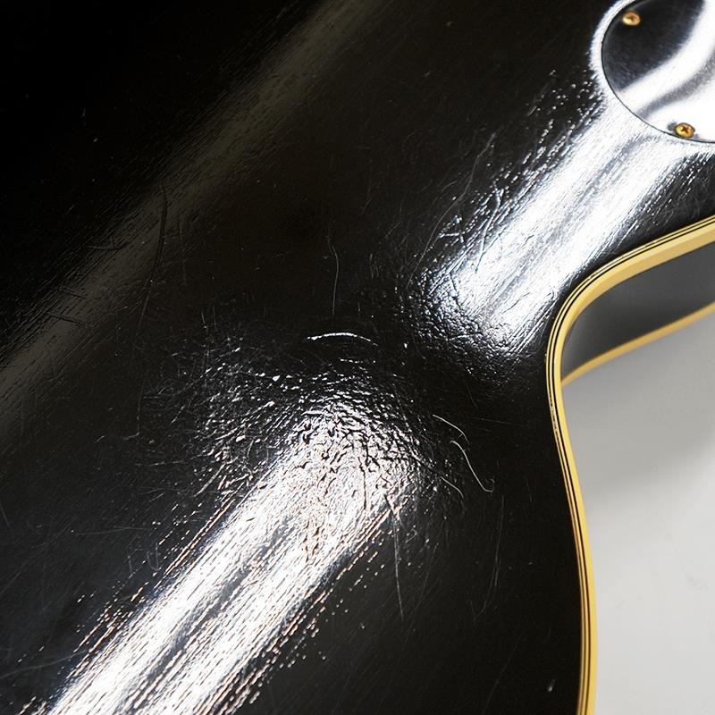 全体に細かいスリ傷や幾つかの打痕、ボディトップの塗装ムラの箇所、ボディバックの目立つバック傷、全体の塗装焼け、くすみ、ピックガードの弾き傷、ネックバック部の細かい傷、ゴールドパーツのくすみ等は見受けられますが、雰囲気のある1本です!いずれもプレイアビリティには支障、問題ございません。当店にてフルメンテナンスとクリーニングを施しておりますので、すぐにご使用出来るお勧めの一本です。