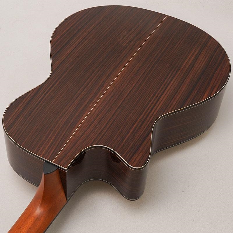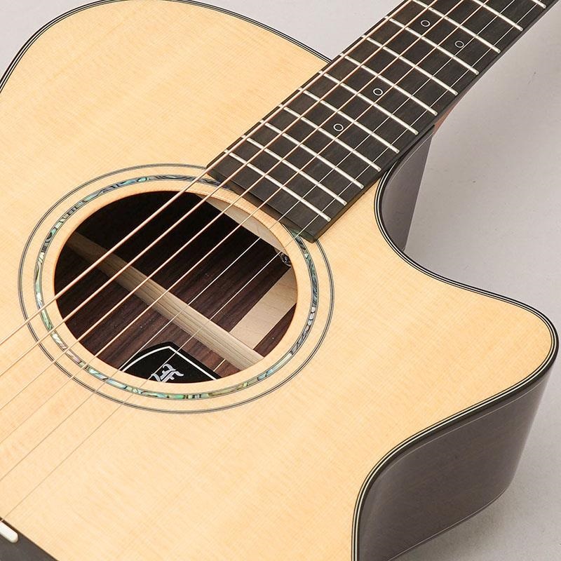 トップ材はAAAグレードのシトカスプルース、サイドバック材はAAグレードのインディアンローズウッドを採用。