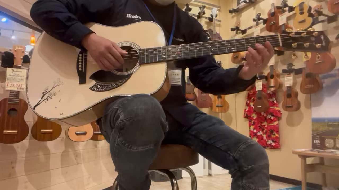 指板インレイには、奈良の桜や八重桜をあしらった枝を描き、その枝にコマドリが優雅に佇むデザインとなっています。