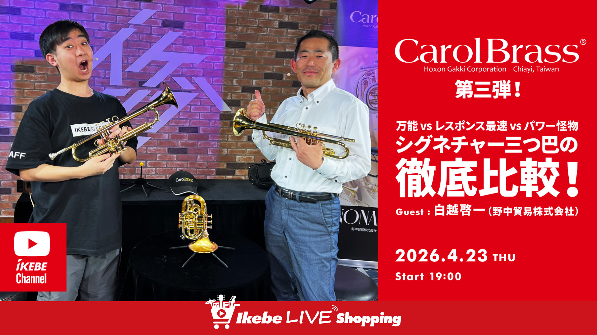 IKEBE LIVE SHOPPING #83 トランペットステーション ~CarolBrass ポケットトランペットを紐解く!Guest : 小山拓也(野中貿易株式会社)~