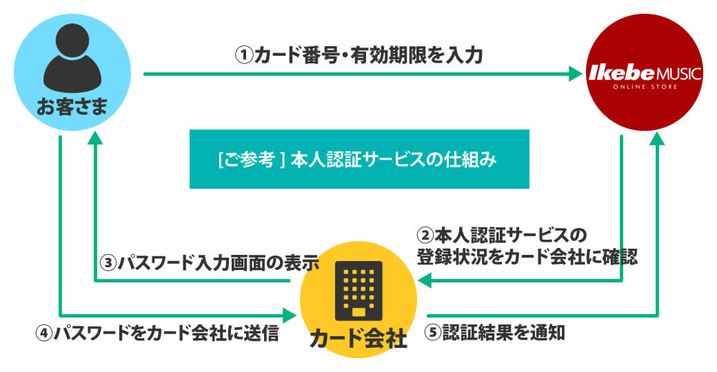 3Dセキュア本人認証対応 イケベ楽器店オンラインストアではより安全なショッピングをご利用いただくため、本人認証サービスを導入しております。 |