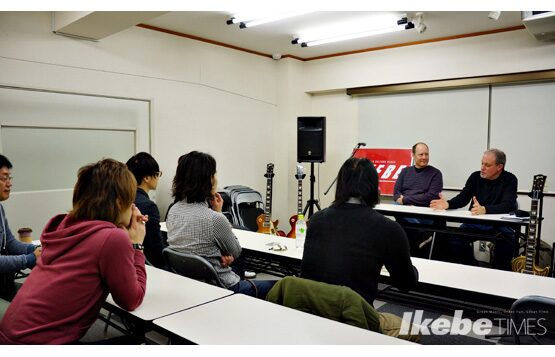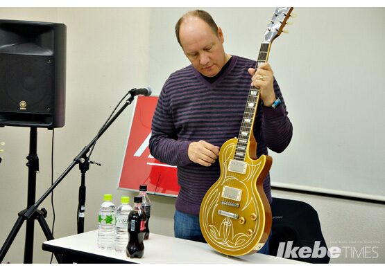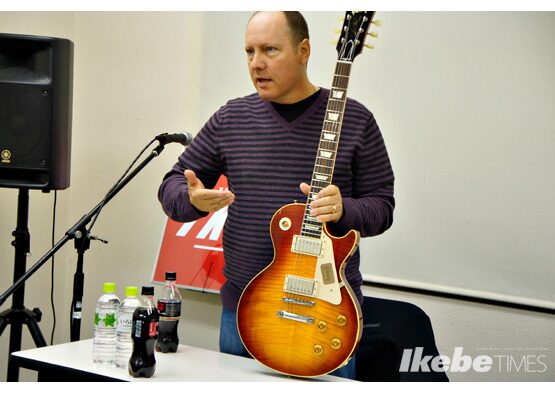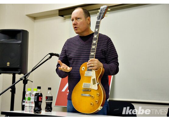 都内某所にて、Gibson Custom ShopのThom Fowle氏とEdwin Wilson氏のお二方をお招きして2014年最新モデルのレクチャー&ディスカッションが行われました。出席者はイケベ各店のギブソン担当者たち。皆ナッシュビルでもお二人とお会いしておりますので、くつろいだ雰囲気の中ミーティングは進行いたしました。通訳はギブソンジャパンの栗田氏にご協力頂きました。