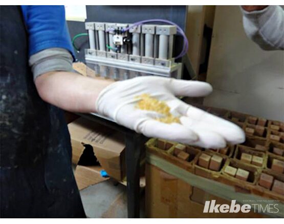 使用前にスポンジ状になった物を、ヒーターで60℃で一時間程温めて、とろみのある液状にし、指板接着を行っていきます。