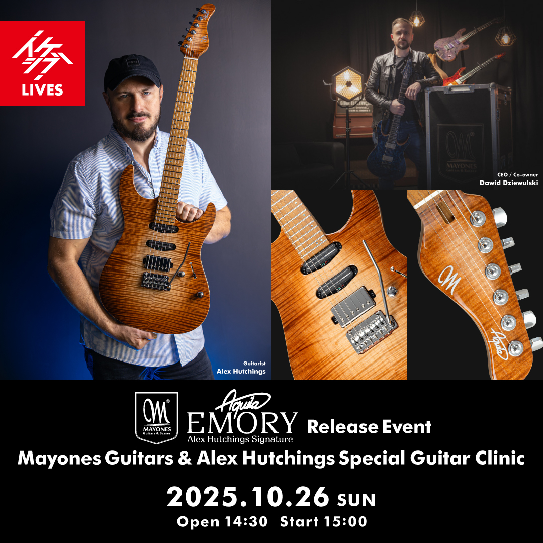 40年以上もの間、ポーランドからヨーロッパをはじめ世界中の音楽シーンを支えつづけるMayones Guitars & Basses(メイワンズ・ギターズ&ベース)より、ギタリストのAlex Hutchings(アレックス・ハッチングス)氏のシグネイチャーモデル「Aquier Emory」が9月19日に情報解禁!
