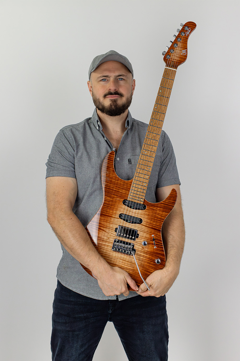 The first Signature Mayones Aquila® was created in close collaboration with Alex Hutchings – the versatile virtuoso known for his fusion chops, decades of stage experience around the world, and respected role as an educator.