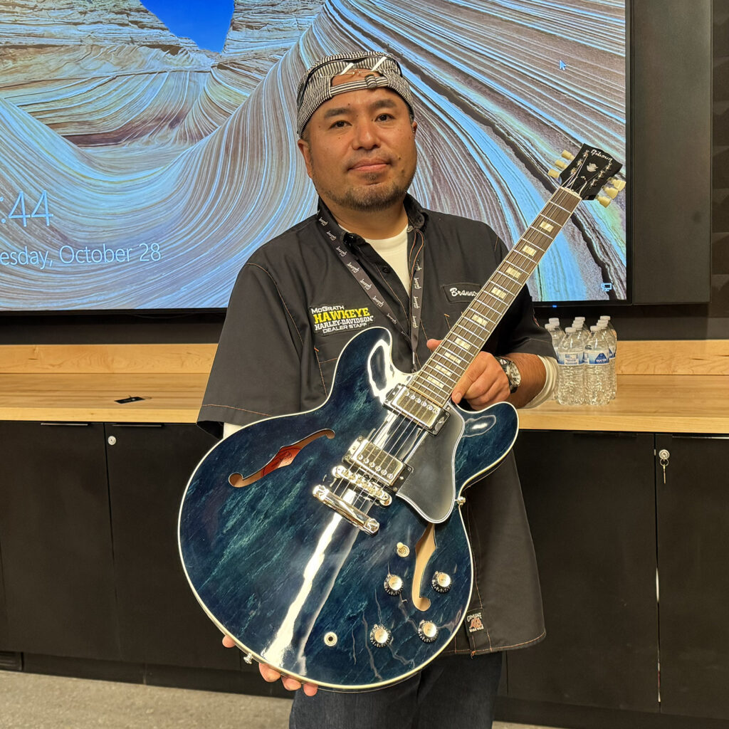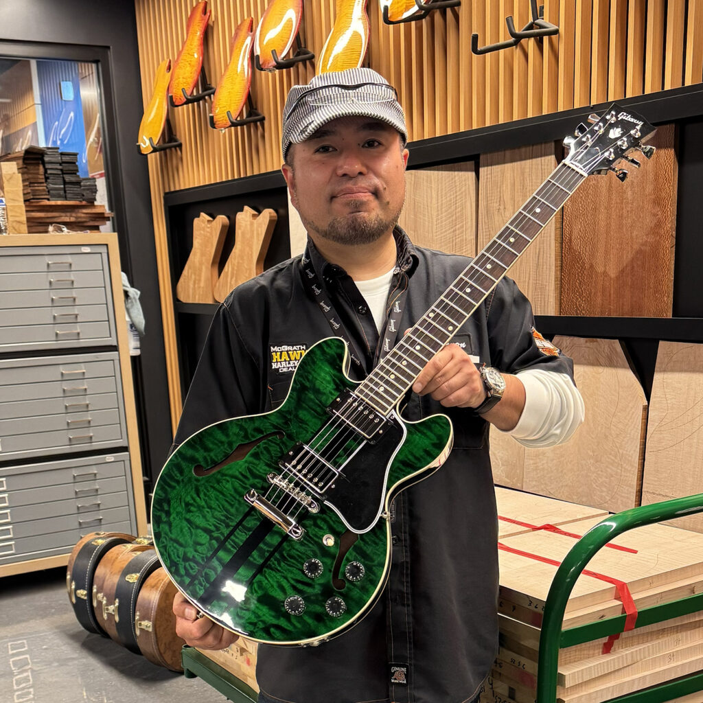 こちらも廃番が惜しまれるCS-336。ES系同様のルックスですが、こちらは全て削り出しで構成されるシンラインボディで、このフィギュアドトップ表裏の削り出し手法は非常に手がかかり、かつ贅沢!「この1本、すごいクールだよね!」とDustinさんもお墨付きを下さいました!