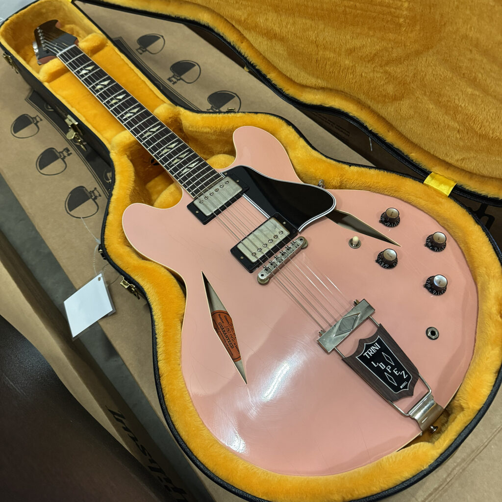 ダイアモンド・ホールとノンリバースの6連ペグヘッドを備えたトリニ・ロペスモデルのシェルピンクを発見!!王道のESシリーズながら、個性的なアレンジが目を惹くルックスは個性を求める多くのギターファンに愛されています。そしてさらに個性を上乗せするこのカラー、たまりません!