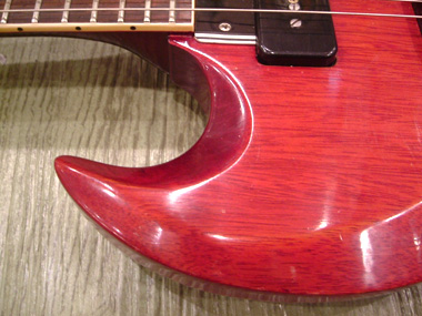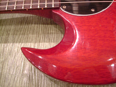 SGは1961年にレスポ-ルのモデルチェンジとして発売されました。発売当初はレスポ-ル氏との契約内でしたのでレスポールSGと呼ばれていました。 しかし、スタンダ-ドとジュニアにはLes Paulのロゴが入っているのに対しスペシャルにはロゴが入っていません。63年後期くらいになるとSGという名前に変わりLesPaulロゴが無くなってしまいます。その後66年頃にピックガ-ドがラ-ジピックガ-ドと呼ばれる物に変更されます。その他年代によってハ-ドウエア等の仕様変更が多々ございます。